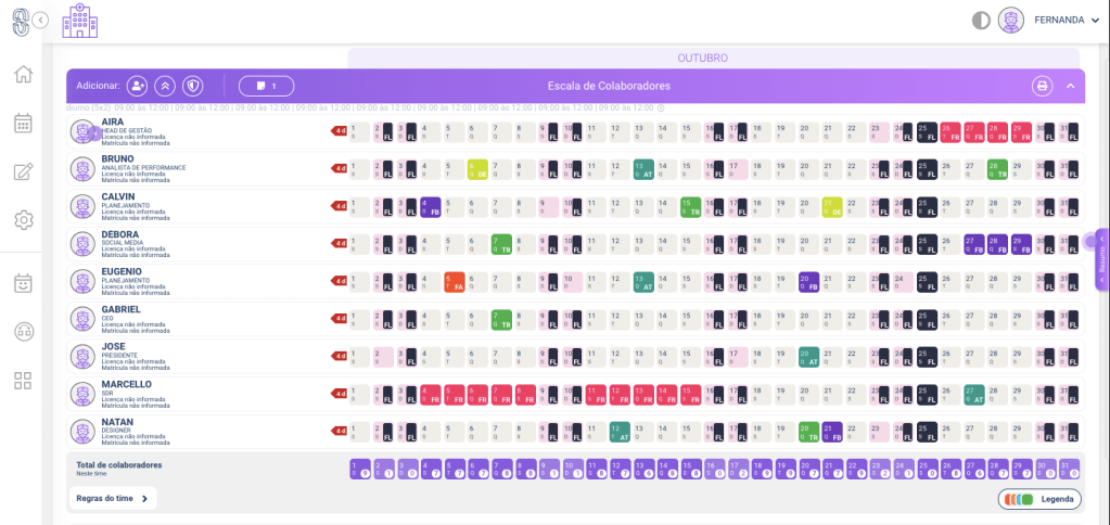 - Escalas de dias: é preciso escalar cada colaborador levando em consideração os dias de folga.